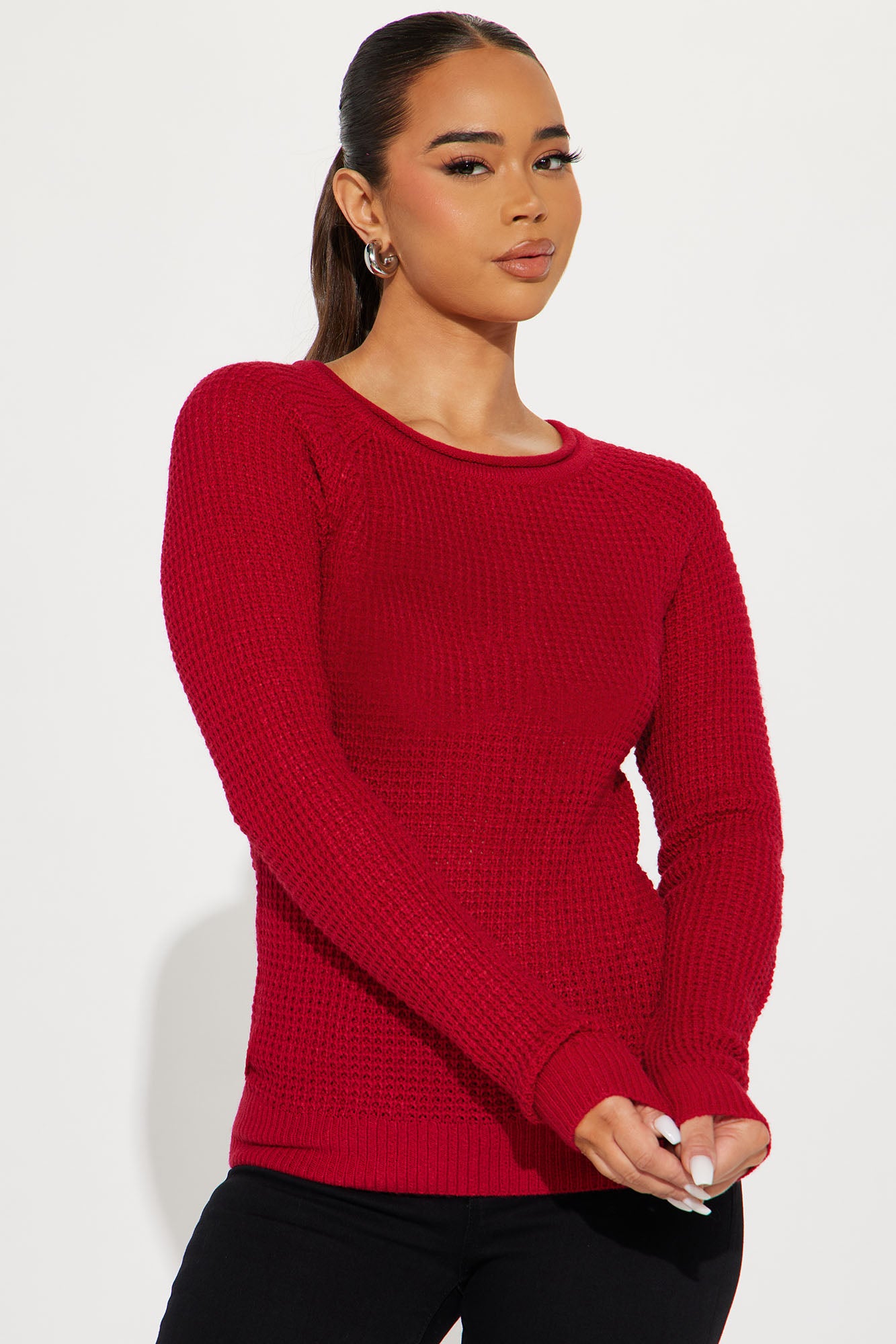Ariana Waffle Sweater - Burgundy