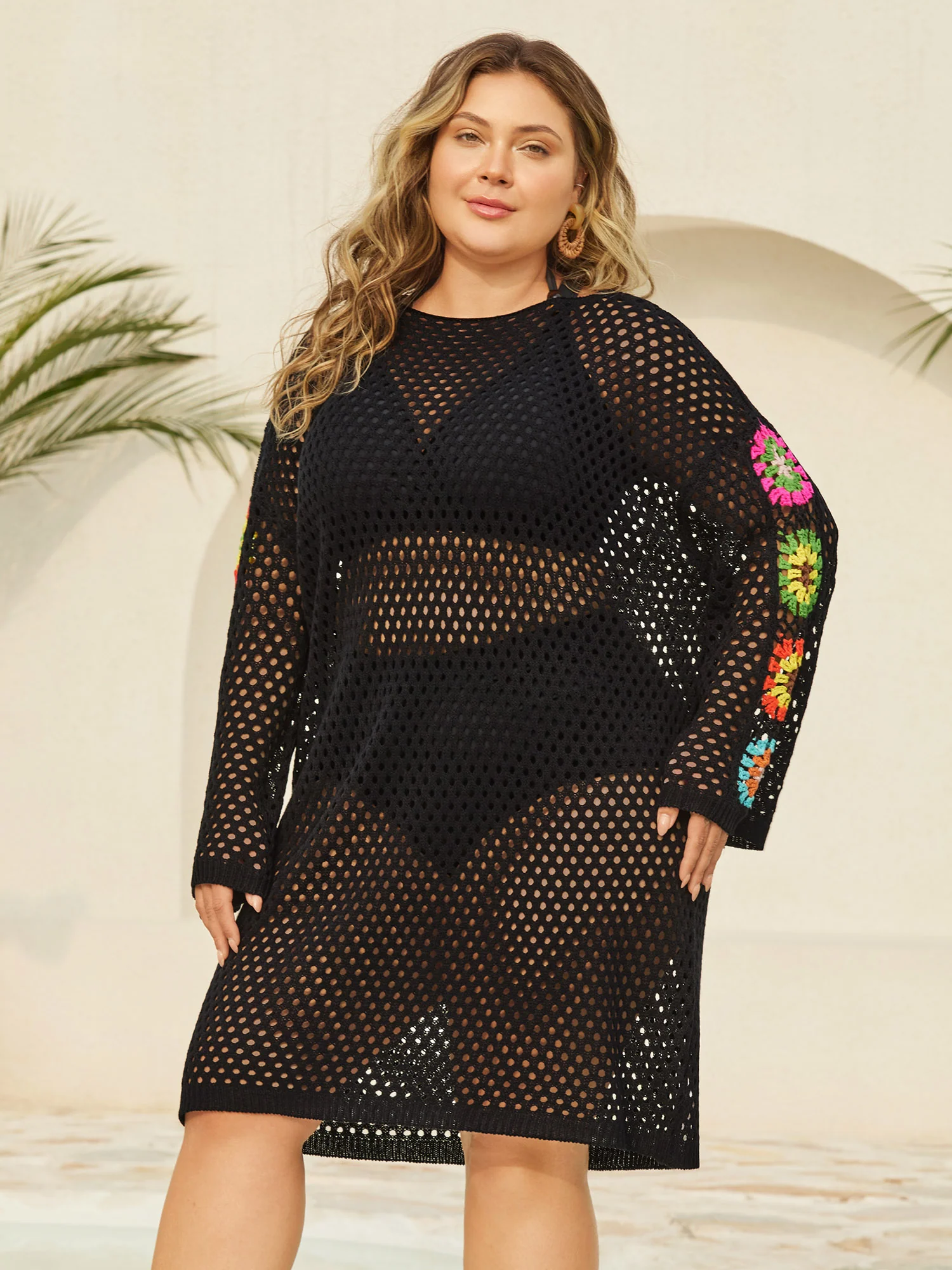 Crochet Shoulder Flower Cut-Out Swim Cover-Up