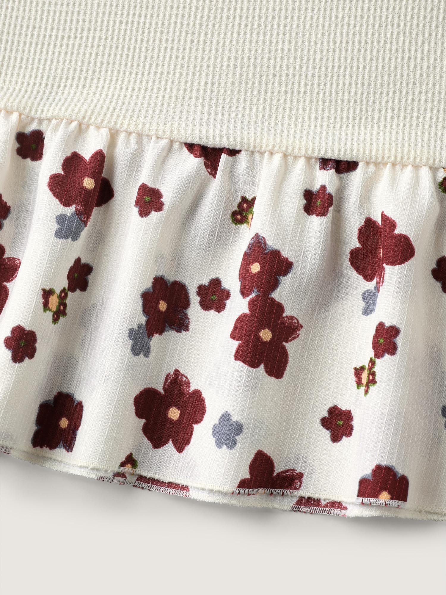 Floral Detail Waffle Contrast Knit Top