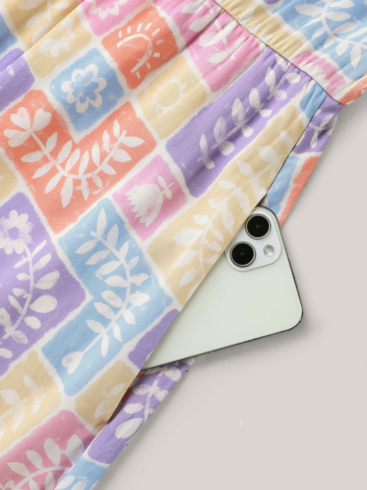 Rayon Floral Collage Stretchy Waist Midi Dress