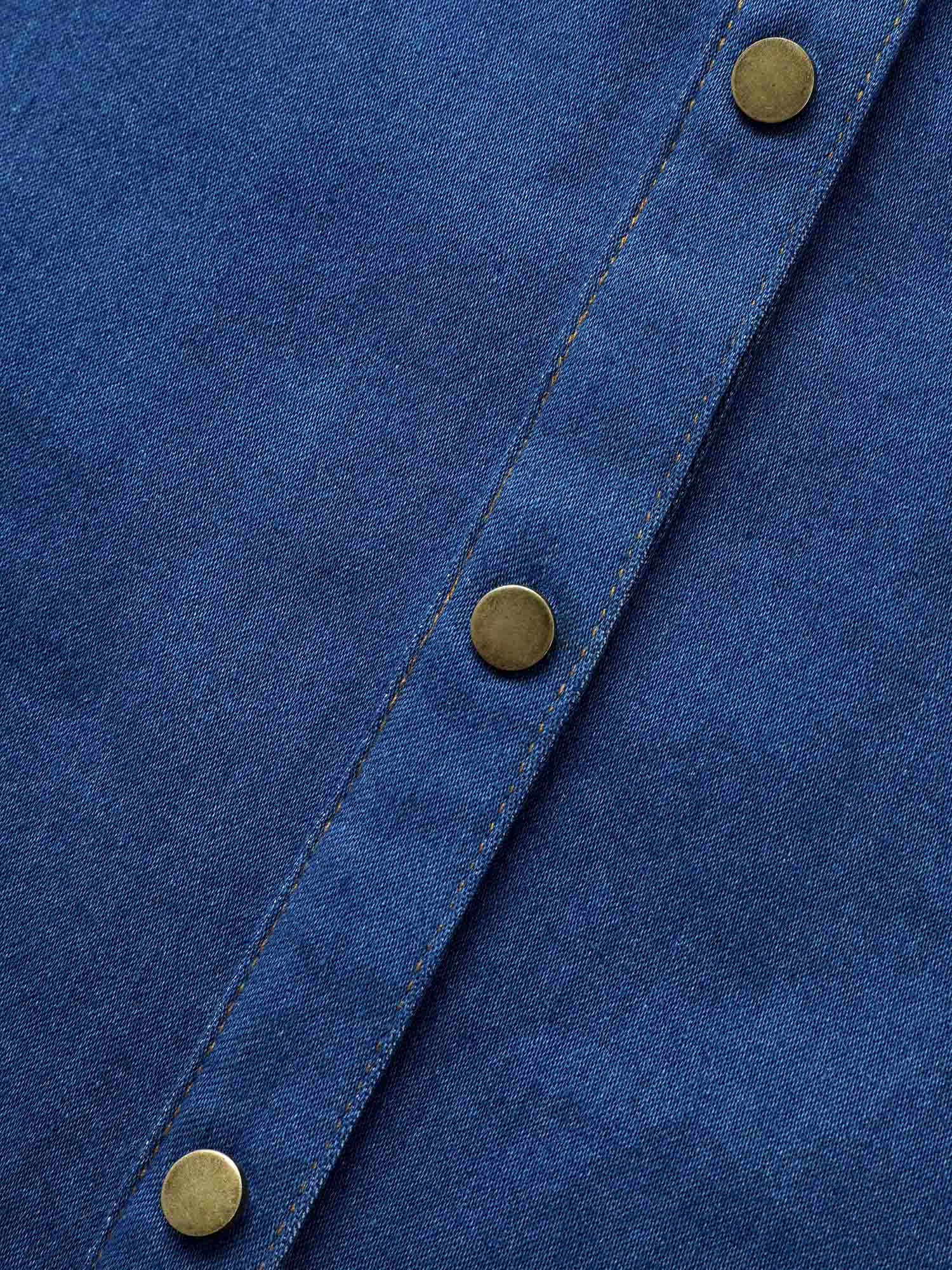 Stretch Denim Lotus Leaf Neckline Shirt