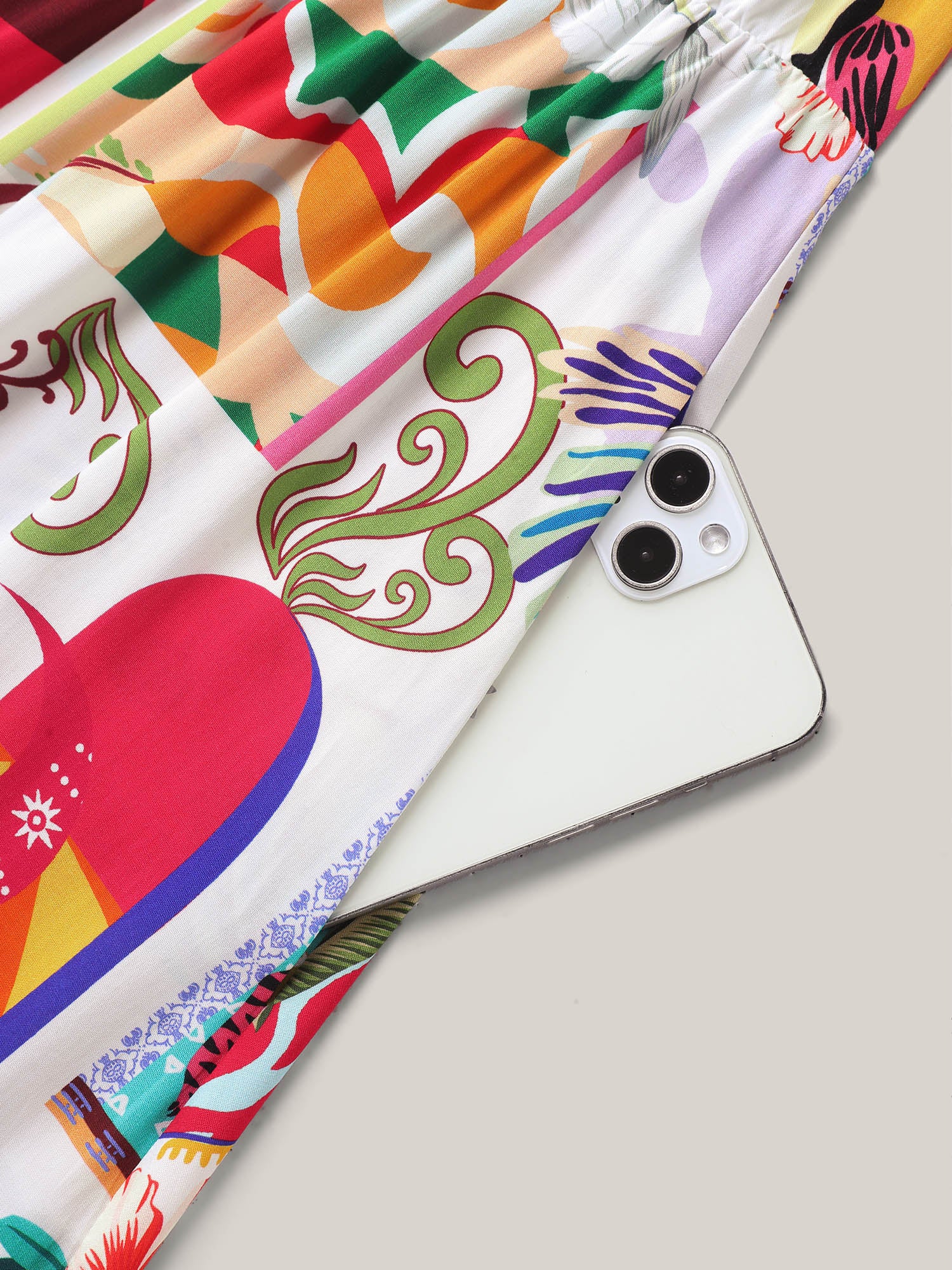 Tropical Collage Print Pockets Midi Dress